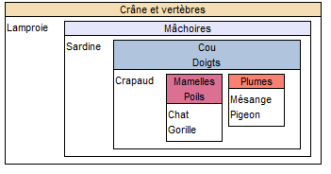 – La classification par groupes emboîtés permet de classer les organismes vivants grâce aux caractères qu’ils partagent : une boîte regroupe les organismes vivants qui possèdent un certain caractère.